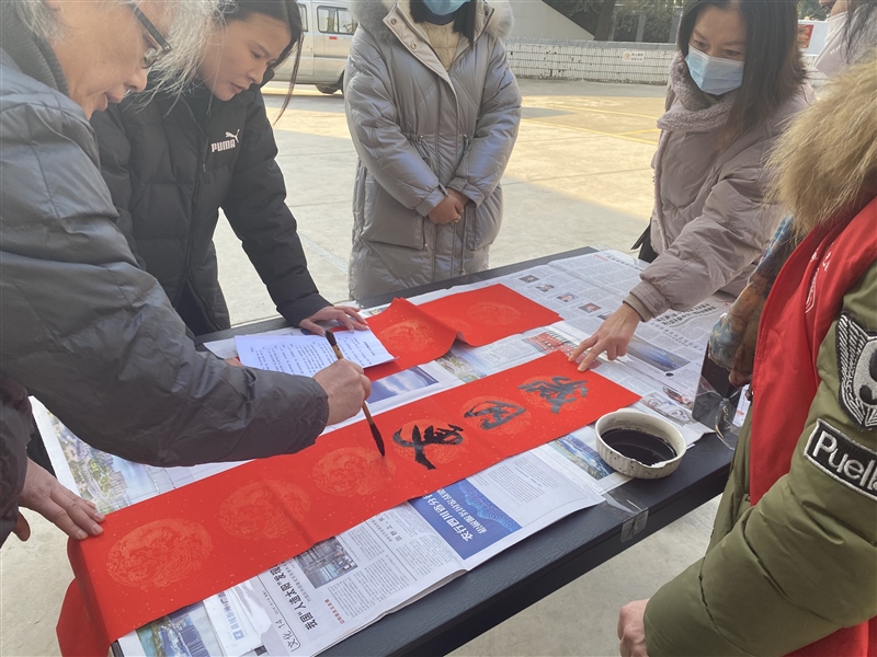 走進社區(qū)送祝福。參與聯點共建昭亭社區(qū)“我們的節(jié)日·春節(jié)”新時代文明實踐志愿服務活動,以送春聯形式為社區(qū)居民送上新春祝福;顒蝇F場,志愿者們忙前忙后傳遞紙墨,書法家們在一張張紅紙上盡情地揮毫潑墨,一個多小時的時間,書寫春聯等上百副。一副副春聯給社區(qū)居民們送上了新春的祝福,一張張福字更是讓大家感受到濃濃的傳統(tǒng)年味。