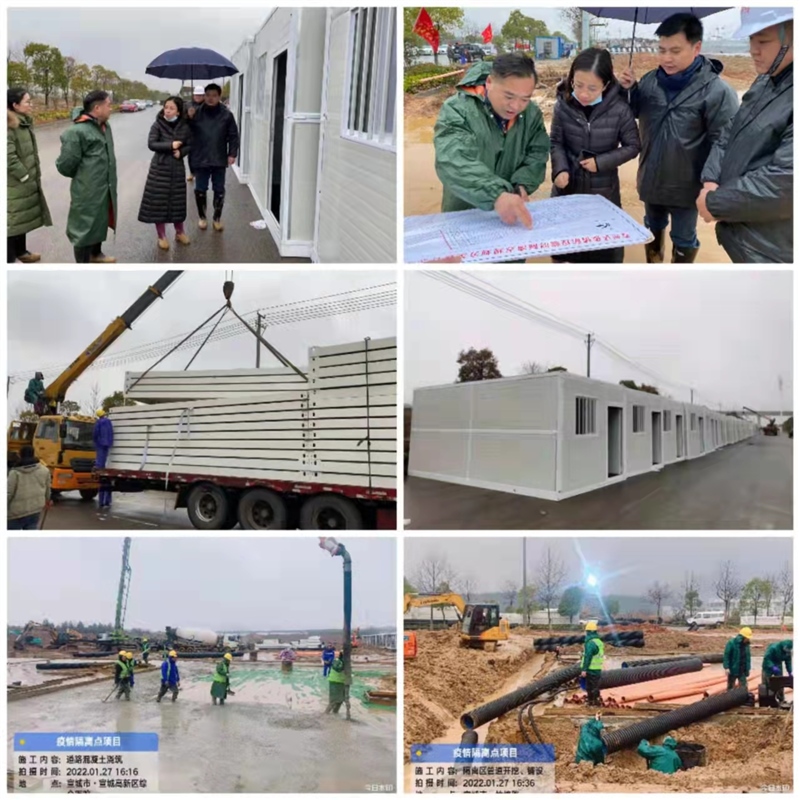 1月27日下午,宣州區(qū)政府副區(qū)長范瀟瀟到疫情防控臨時隔離點(diǎn)施工現(xiàn)場,查看工程施工進(jìn)展情況,并充分肯定了項(xiàng)目施工進(jìn)展速度。截止晚上18:00,疫情防控臨時隔離點(diǎn)項(xiàng)目集裝箱板房材料到場180多套,完成160套集裝箱板房拼裝。混凝土道路、雨污水管道和污水處理設(shè)施同步進(jìn)行。面對即將到來的低溫雨雪冰凍天氣,區(qū)國資集團(tuán)積極組織協(xié)調(diào)各項(xiàng)施工安排,施工人員全體上下團(tuán)結(jié)一心,以堅(jiān)決態(tài)度克服難關(guān),全力推進(jìn),高質(zhì)量完成項(xiàng)目建設(shè)。