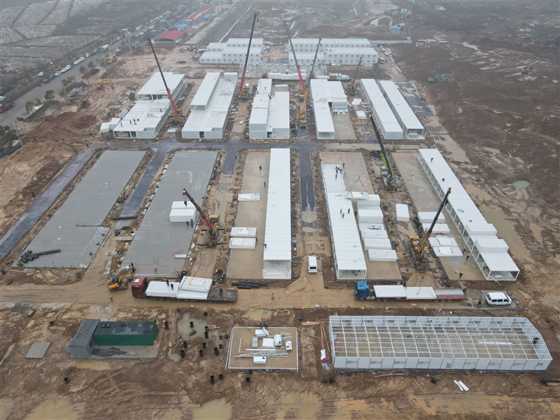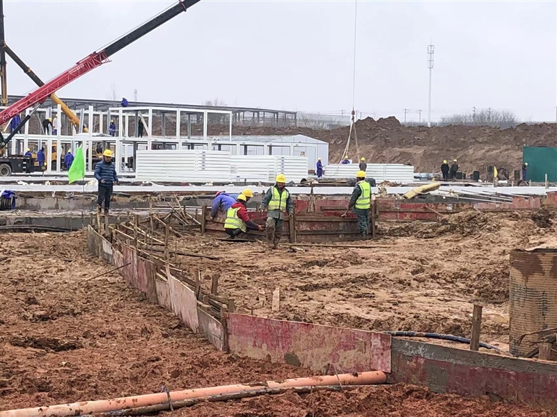 2月10日,農(nóng)歷正月初十,大雪過(guò)后,地面泥濘。隔離區(qū)項(xiàng)目現(xiàn)場(chǎng)管理人員及施工人員精神抖擻、有條不紊地開展施工作業(yè),持續(xù)推進(jìn)打包房、折疊房和板房的安裝,水電配套同步進(jìn)行。